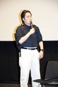 くるまはオールバックのヘアスタイルで、ブルーのシャツの裾をしっかりと白のパンツにしまい、黒のリュックを背負ったスタイルで登場。これは劇中で久々にノラと再会を果たす際のヘソンそっくりのスタイルで、上映後の会場は大爆笑。キョロキョロと人を探すモノマネも繰りだし、「ヘソンです」と挨拶して大きな拍手を浴びた。くるまは、「思いついちゃったんで。ヘソンコーデを組めないかなと思って、そこのユニクロに寄って。いま全部、買ってきました。限りなく近いです」と自身でも大満足の様子。リュックを高めの位置で背負う点もヘソンそっくりだったが、パリッと決めたヘソンと、カジュアルな出立ちのノラという2人のコーデのギャップも時の流れや彼らの関係性をよく表現していると分析し、「僕も大学生の時に、先輩の誕生日パーティに呼ばれて。パーティだからちゃんとした格好をしなければと思って、スーツを着て行った。そうしたらズンズン系のパーティだった。信じられないくらい、浮いていた。ヘソンも同じ気持ちだっただろうなと思う」と共感を寄せていた。