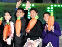 【写真を見る】ニンジンを手にニッコリ!映画『ズートピア2』(12月5日公開) ZOOJOJI 大ヒット祈願イベントに登壇した下野紘、山田涼介、Dream Ami