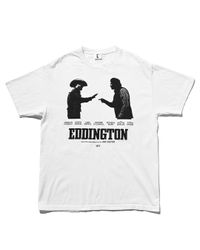 ヴィンテージTシャツを中心に展開するweberが手がけた今回のコラボレーションTシャツは、フェニックス、パスカルが演じる保安官と市長の対立する緊張感ある象徴的なシーンをフロントに配置し、小さな町が一触即発の“大炎上”と化していく物語をグラフィックで表現。あえてモノクロにすることで、暴力と信念、正義と悪の境界が曖昧になっていく作品のテーマを強調した。キャスト名とタイトルロゴ、A24のクレジットを載せた、作品の空気をそのまま纏える仕上がりとなっている。