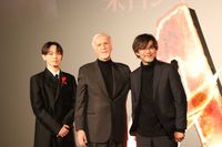そんななか、会場にはキャメロン監督の大ファンだという宮世琉弥と山崎貴監督が駆けつけ、花束を贈呈。ひと足先に最新作を鑑賞した2人は大興奮でキャメロン監督に感想を伝え、宮世は、生身の役者の演技を緻密に再現してみせたパフォーマンス・キャプチャ技術ついてキャメロン監督に質問する場面も。