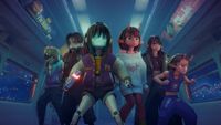 ミルキー☆サブウェイに閉じ込められるのは、チハルとマキナのほか、スピード違反で捕まったアカネ(声:金元寿子)とカナタ(声:小市眞琴)のヤンキー男女2人組と、砂糖の不法所持で逮捕されたカート(声:内山昂輝)とマックス(声:山谷祥生)。頭に触覚が生えていたり、部分的に機械化されていたりとSF感満載の見た目だが、カラフルなY2Kファッションやストリートファッションで身を包んだ独自のミクスチャー感に亀山監督のセンスが光る。