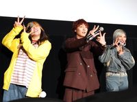 「キャラクターたちが出てくるホラーは、怖さとマッチしてより怖いシーンもあれば、逆にマイルドになって観やすくなるシーンもあって。キャラクターたちがすごくいいアクセントになっていると思っています。パワーアップしたキャラクターたちにも注目ですし、(ホラーが苦手で)怖いよ、びっくりしちゃうよという方とかでも、お化け屋敷感覚で終始、ハラハラ感を持ってワクワクしてもらえたらなと思います」との堀のコメントに、すがちゃんは「こういうことを言いたかった!」と反応すると、信子ときょんちぃは「できてたよ!」と、宣伝リーダーとして立派に作品の魅力を伝えることができたと胸を張っていた。