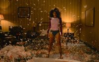 今回解禁された場面写真は2点。最初の1枚は、ビーツが演じる住み込みメイドが、羽毛が舞う寝室のベッドで仁王立ちしているカットだ。覚醒した彼女は、この後、悪魔崇拝者たちを次々となぎ倒していくことになる。そして、もう1枚は1928年にニューヨークに建てられたとされるセレブ御用達の高級マンション「バージル」をメイドが見上げている場面となっている。