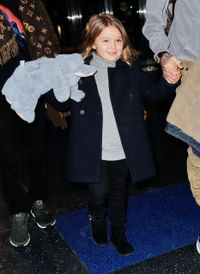 三つ編みを後ろに束ね、ラフな長袖のワンピースを着てパパと手をつないでいたハーパーだが、足元はなんと235ポンド(約35900円)のグッチの黒いローファーという出で立ちだった。