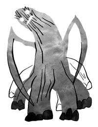 身長は、7mはあるだろうかと感じた。全身は黒に近い深い緑色で、紫のような筋が至る所に走っている。左右4本ずつの太い脚が生え、遠目では細く見えたそれは一本一本が丸太のように太かった。その先には溶岩が固まったかのような黒く巨大な爪が尖っている。蜘蛛のようなカマキリのような、とにかく何かしらを捕食するのに長けた形状で、鎌に当たるのであろう腕は電柱ほどの長さがあり、先が鋭利な刃物のようだ。筋肉で肥大しているように見えた胴体は、よくみると頑丈な筋が集まって構成されている。眼と口かと思われる器官もその筋に覆われ、首の延長に見えた。ここまでの体躯であるにも関わらず足音が静かなことが不気味だった。無理に大きくした体ではなく、俊敏性も伴っている証拠だ。恐怖のあまり何も考えられなくなった都築は、小学校時代の体育館を思い出し、「この大きさが入ったらパツパツだろうな」などと幼稚な思考が頭をよぎった。吉崎は口を開けたまま「もうちょっと・・我々に似た・・形かと思っていたな」とつぶやいた。