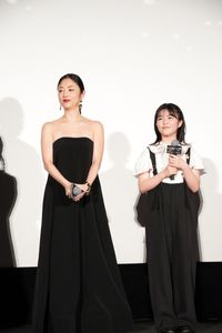 【写真を見る】MEGUMI、デコルテ輝くブラックのストラップレスドレスで登場!