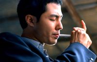 韓国映画ファンにチョ・インソンの名が広く知られたのは、やはり『ラブストーリー』(03)と『卑劣な街』(06)の2作だろう。前者では、あくまで主演のソン・イェジンのサポートロールに徹した(それも彼の大事な個性なのだが、詳しくは後述)のに対し、後者の『卑劣な街』はまさしく「堂々の主演作」。それまでのさわやかなハンサム青年や、ロマンスドラマの主人公といったイメージを覆し、暴力と欲望まみれの世界に生きる暴力団の若きナンバー2を熱演した。