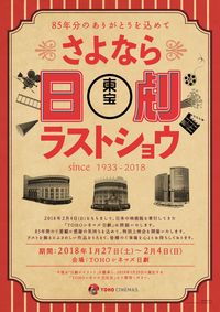 3月29日(木)にオープンする、都内最大級の13スクリーン約2800席を擁する“映画の宮殿”をコンセプトにしたTOHOシネマズ日比谷に銀幕の灯が継承されることになり、2月4日(日)に85年の歴史に幕を降ろす“日劇”ことTOHOシネマズ日劇。1933年に「日本劇場」としてオープンした同劇場は、戦争や再開発、改装や改称を重ねながらも日本屈指の大劇場として多くの映画ファンに愛されてきた。