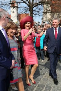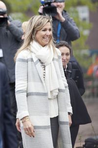 早朝には、ベージュのパンツにベージュのコートという出で立ちで夫のウィレム=アレクサンダー国王とともに登場したマキシマ女王。デイリー・メール紙には「ノーメイク」と紹介されており、ロングヘアに顔をくしゃくしゃにした笑顔でメディアやファンに手を振る様子が掲載されている。