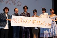 小玉ユキによる同名コミックを実写映画化した『坂道のアポロン』(3月10日公開)の完成披露舞台挨拶が2月5日にEX THEATER ROPPONGIで開催され、知念侑李、中川大志、小松菜奈、中村梅雀、真野恵里菜、三木孝浩監督が登壇。知念と中川が、小松にバースデーソングを生演奏でサプライズプレゼントした。