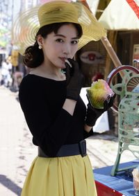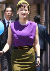 劇中で美雪は、黄色のフレアスカートに黒のトップス、カーキ色のタイトスカートにパープルのノースリーブ、ブルー系のストール&ワンピースなどのコーディネートを披露する。頭にちょこんと乗せたベレー帽やシースルー生地の帽子、レースのグローブなど、小物アイテムもおしゃれ。かのファッションアイコン、オードリー・ヘップバーンを彷彿させるかのような上品さだ。