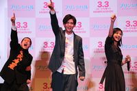 本作は、まっすぐで不器用な女子高生・糸真(黒島)が、学校で一、二を争うモテ男子・弦(小瀧)と和央(高杉真宙)の間で揺れ動く様を描く青春ラブストーリー。メンバーが客席の間を通って登場すると、思わず涙する観客も。小瀧は「早ないか?」とツッコミ、会場の笑いを誘った。