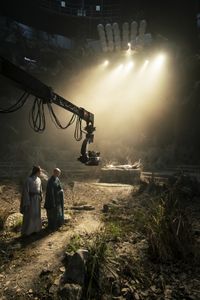 他にもたった1日で草が生い茂る庭や、殺風景で冷ややかな墓所など、栄華の美にはつねに退廃の美が帯同していく。そういったこれまでのカイコー作品が持ってきた美への見地を総動員させて栄枯盛衰のコントラストを作り出す本作は、彼の映像美学の到達点なのかもしれない。