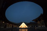 本作の妖艶さを形づくる場面として、空海と白楽天の2人が阿倍仲麻呂について調べはじめ、彼の日記を読む場面がある。突如時代が数十年遡り、繁栄を極めた玄宗皇帝の時代の長安へと観客を誘い、あたかも“極楽の宴”の宴客として出迎えられているかのような錯覚を与えられる。ところが時代が立ち戻ると、その宴が行われていた場所は藻が生い茂り、薄暗く寒々しい空間へと変わっていく。