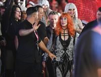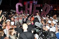 シェールは3日の夜8時すぎ、30万人の人々で賑わう大通りに姿を現した。この時のシェールは、目にも鮮やかなオレンジ色のウィッグに、黒地にシルバーの装飾を施した華やかなジャケットを着用。黒のブラトップで、胸の間に黒革のハーネスをくいこませた斬新なスタイルだったが、露出はかなり控えめに抑えていた様だ。