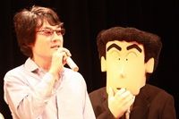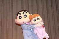 主題歌「オメデトウ」を担当したmihimaru GTのhirokoとmiyakeがしんちゃんたちと舞台挨拶