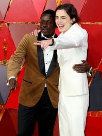 『ゲット・アウト』のジョーダン・ピール監督は、カルバン・クラインの白いジャケットに黒いパンツと白黒で、主演のダニエル・カルーヤは褐色のベルベット素材のブルネロ クチネリのジャケットと黒いパンツで、『ベイビー・ドライバー』のアンセル・エルゴートは、トム・フォードのダークグリーンのベルベット素材のジャケットに黒いパンツで決めた。