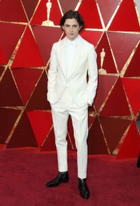 また『君の名前で僕を呼んで』のアーミー・ハマーとティモシー・シャラメはそれぞれ、ジョルジオ・アルマーニのバーガンディのベルベット素材のタキシードと、黒い靴以外は蝶ネクタイまで真っ白なベルルッティのタキシード、また、脚色賞で89歳の最年長受賞者となったジェームズ・アイヴォリーは、タキシードのインナーにティモシーの似顔絵が描かれたシャツを着用するという粋なファッションで登場した。