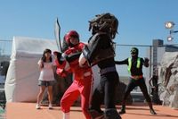 この他にも、話題を呼びそうなのがギガチェンジャーの歌。このテーマソングも、完全オリジナルでレコーディングが行なわれたそうだ。さらに、劇中でヒーローショーが行なわれる会場で、子供たちが着ているギガチェンジャーTシャツもオリジナルで作ったというのだから、これまた驚きだ。
