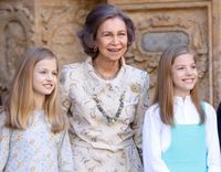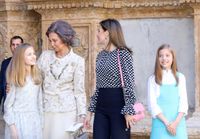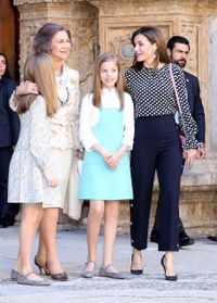 イースターの礼拝では、レティシア妃、夫フェリペ6世国王、2人娘のレオノール王女(12)とソフィア王女(10)のほかに、フェリペ6世国王の母親ソフィアと父親のフアン・カルロス1世も出席。