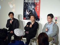 塚本晋也監督のサイバーアクション『鉄男 THE BULLET MAN』。5月22日の公開を前に、4月30日の今日、塚本晋也監督、嶋津善之(「完全鉄男」編集)、映画プロデューサーを務めた谷島正之が、一般客約50名を招き、トークイベントを開催。映画製作秘話など、軽快なトークでファンを楽しませた。