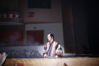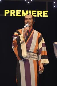 本イベントは上映後、本編の余韻も冷めやらぬなかスタート。キャストたちは会場である松竹座の特性を活かし、煌びやかなムービングライトの中、花道から登場。まず豊川、桂が役の衣装で登場すると、まさにスクリーンの中から飛び出してきたかのような姿に会場は大盛り上がり。そしてちょんまげ姿の阿部が花道上のスッポン(せり上がり)から登場すると、更なる歓喜の声があがる。