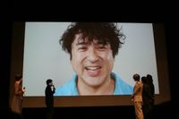 ムロツヨシはビデオメッセージの参加となったが、大いに会場は盛り上がる。さらに平井堅とも中継がつながった。平井が「僕、日比谷にいます」と言うと、福田監督は「面倒くさいので来ちゃってください」と興奮しながらラブコール。平井が本当に現れると、福田は「嘘でしょ!やばいですね」と恐縮しながら大喜びした。
