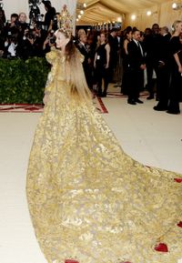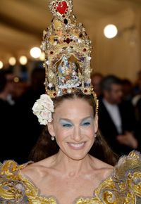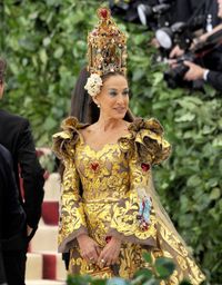 ファッション界のオスカー、もしくは東海岸のオスカー(映画のオスカーは西海岸)とも言われるメットガラの今年のテーマ、「Heavenly Bodies:Fashion and the Catholic Imagination(天国のボディ:ファッションとカトリックのイマジネーション)に合わせ、サラは、ドルチェ&ガッバーナの煌びやかなゴールドに金細工や赤いサクレハートなどバロック調の装飾があしらわれたロングトレーンのドレスに、ナポリの祭壇を模したヘッドピースという出で立ち。