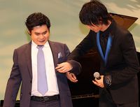 またこの日は、劇中で萌音扮する和音が演奏する曲「水の戯れ」と、エンディング・テーマ曲「The Dream of the Lambs」を辻井が生演奏するひと幕も。美しくも力強い演奏が響き渡ると、上白石姉妹は感涙。山崎も「こんなに近くで聞かせてもらえるなんて貴重なこと。辻井さんが力強さと気持ちで弾いていることに感動しました」と感激しきりで、「来てよかったな」と喜びをあふれさせ、会場も爆笑。「元気をもらえた。すごくいい時間だった」と語り、しっかりと辻井の手をとり、大きな拍手に包まれながらステージを降段した。