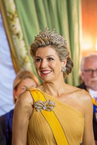 マキシマ王妃、120年前のティアラと派手な肩出しドレスで王室外交!
