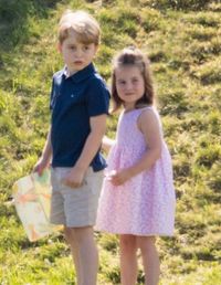 以前も履いていたお揃いの紺のスニーカー、ハンプトン・キャンバス・プラムで登場したジョージ王子とシャーロット王女。ザ・リトル・ホワイト・カンパニーの小さな花模様のついたピンクのドレスを着たシャーロット王女は、サングラス姿やでんぐり返しなど大はしゃぎでおてんばぶりを発揮。