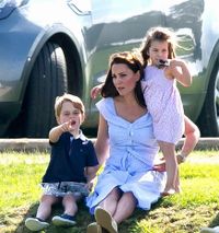 一方の、半ズボンに紺の半袖のポロシャツを着たジョージ王子は遊び方も控えめで、時には泣きながらキャサリン妃になだめられている様子も捉えられている。