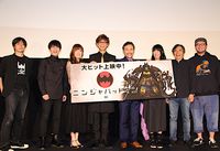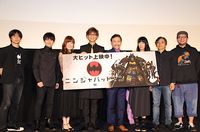 劇場版アニメ『ニンジャバットマン』の公開記念舞台挨拶が6月16日に新宿ピカデリーで開催され、声優の山寺宏一、高木渉、加隈亜衣、釘宮理恵、梶裕貴、水崎淳平監督、脚本の中島かずき、キャラクターデザインの岡崎能士が登壇。イベント翌日の6月17日に57歳の誕生日を迎える山寺にサプライズで特製のバースデーケーキが贈られ、梶がファーストバイトをして会場を盛り上げた。
