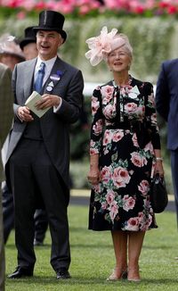 ロイヤル・アスコットの見どころの1つは、女性客の華やかな帽子やファシネーターだが、ヘレンのエレガントな帽子も期待を裏切らない美しさだった。右サイドにはメッシュで作られた大ぶりの花飾り、そして顔の半分を隠すレーシーなヴェールのついた淡いピンクの帽子は、大きさを感じさせない軽やかな印象。薄いピンクの口紅を引いたヘレンの顔色を、より明るく見せていたようだ。ヘレンは会場に飾られていたバラの生垣を背景にしてフォトコールに応じ、数百のバラの花に溶け込むようなパーフェクト・ショットを完成させていた。