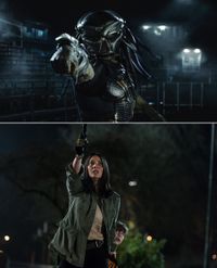 メガホンをとったのは『アイアンマン3』(13)のシェーン・ブラック監督で、かつてアーノルド・シュワルツェネッガーが主演した1作目『プレデター』(87)で、プレデターによって最初にハントされた男を演じたことでも知られている。『ロボコップ 3』(93)のフレッド・デッカーを共同脚本に迎え、人類とプレデターによる緊迫感溢れる“サバイバルゲーム”をスリルと共に描きだす。
