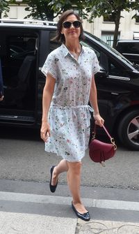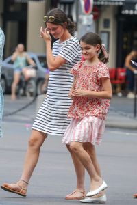 渦中にあったケイティだが、報道合戦が白熱していた先月30日には、娘のスリとパリの街を散歩する姿が目撃されている。ケイティ着用のミニ丈のシャツドレスは、ローウエストのリボンベルトがアクセントで、ライトブルーに細かいフローラル・プリントが涼しげなスタイル。娘のスリは髪の毛を後ろで1つに束ね、スモーキーピンクのリボンを結んでいる。赤い花柄プリントのトップスと薄いピンクのストライプ柄のスカートに白いバレリーナシューズを合わせ、母娘揃ってガーリーなファッションだ。と言っても、ケイティが差し色に使ったダークレッドのゴージャスなバッグはディオールの品で、ガーリーに収まりきらない大人の貫禄も見せている。