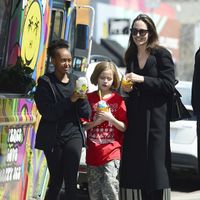 かねてから様々なところに子供たちと一緒に出没しているアンジェリーナだが、マドックス(16)、パックス(14)、ザハラ(13)、シャイロ(12)、双子のノックスとヴィヴィアン(9)が勢ぞろいするのは珍しい。