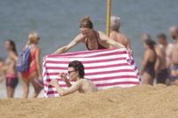 母親のヴァネッサと、6月30日に電撃結婚したばかりの映画監督で作家のサミュエル・ベンシェトリとともにビーチを訪れたジャックは、黒地に黒と白の花模様の入ったミドル丈の海水パンツにサングラス、恋人は真っ白なビキニに野球帽という出で立ちで、ビーチに敷いたタオルの上に寝そべっている様子などがパパラッチされているが、ジャックが本を持った恋人と話したり、キスをしたりと、太陽に負けないほどの熱々ぶりだ。