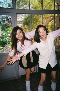 さらに懐かしさを感じさせるのが、彼女たちのコギャルっぷり。スカートの丈や、ルーズソックスなどのアイテム、髪色の明るさから両手を広げるeggポーズなど、既視感満載であの頃にタイムスリップしたかのよう!眉の細さや、肌の色、第2ボタンまで開いたシャツ&カーディガンの着こなしまで「こんなギャルいた!」とうなずける“完コピ”の役作りだ。クランクイン前には“コギャル講習”を受けて90年代文化を学んだそうだが、見事に時代の空気感が漂っている。