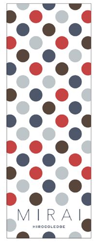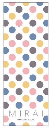 高橋はくんちゃんとミライちゃんの色をイメージに、注染という伝統的な染色技法により手ぬぐいを手作業で染め上げたそう。「人や場所、さまざまな記憶がカラフルな点となり、くんちゃんの人生を紡いでいく。そんなイメージのデザイン」と語るように、2種類の手ぬぐいが円と直線でデザインされている。