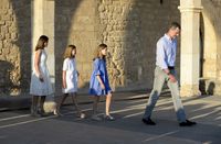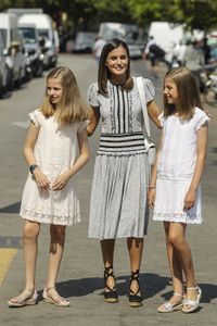 娘のレオノール王女(12)も白いノースリーブにカーキ色のショートパンツとサンダル、ソフィア王女(11)は白地に水色の刺しゅうの入った半袖のブラウスにひざ丈の白いショートパンツという出で立ちで、今回も母娘がばっちりコーディネートしている。