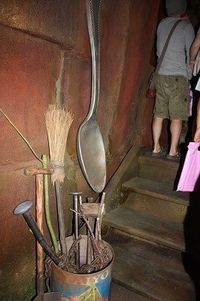 ●草花が生い茂った庭やまぶしい陽光も再現。小人たちの家だけではなく、野趣あふれる庭も再現。ヒマワリサイズのタンポポが咲いていたり、大きなバッタがいたりする。また、照明も陽光を再現し、葉の裏側の葉脈が透き通って見えるところにも感動!