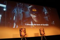 続いて観客の前で「俺はガンダムで行く」という台詞をバッチリ決めると、会場から黄色い歓声が上がった。この台詞について「台本には最初、台詞が英語で書いてあって、(ジャパニーズ)とあったんです。その後、なにか提案が来るのかと思いきや、通訳さんがいなくなり、現場で日本語がわかるのが僕しかいなくなって。そこからガンダムファンの皆さんに失礼のないようにと、いろいろと考えました」とのこと。