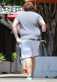 しかし久しぶりにロサンゼルスの街を歩いているところをパパラッチされたクリストファーは、さらに巨漢に! 白い短パンにグレーのTシャツとスニーカー姿で車から降りてくる様子や、紺の短パンにTシャツと野球帽を被り、マリアやキャサリンと一緒に街を歩いている姿は、胸の巨大化のみならず、洋服の上からでも身体全体が脂肪で波打っているのが見て取れるほどで、日本で言えば力士のレベルまで進化。さらに表情も暗く、誰だかわからないほど別人化している。