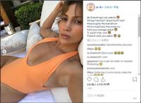 投稿された写真のジェニファーは、カーダシアン一家やエミリー・ラタコウスキーなどのセクシーモデル御用達ブランド、マイラ・スイムのワンピース水着を着用。ワンピース水着といっても布面積は非常に小さく、胸元が深くカットされたプランジング・ネックで、まるで太めの肩ひもがバストトップを隠しているようなデザインだ。腰骨の上まで切れ込んだハイレグで自慢のヒップをむき出しにし、グラマラスな下半身を見せつけるポーズも色っぽい。