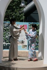 ファンの歓声の中、夏らしく浴衣で登場したふたり。浴衣姿の感想を聞かれたふたりは「今年、初めて着たので嬉しいです」と微笑み、お互いの浴衣姿については「素敵です」と褒め合った。夏休みの思い出を尋ねられ、多部は「祖父母の家に行き、ボートで水上スキーをしたことですね」と語り、三浦は「サーフィンを毎年やってます。今年からはもっと本格的にやろうと思い、最近行っています」と、共に水のスポーツをあげ、司会者から「得意なんですか?」の質問に被せるように、お互いに「得意なんですか?」と仲睦まじげに掛け合った。