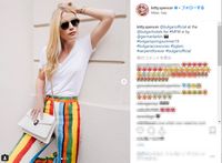 ミラノ・ファッションウィークで、ドルチェ&ガッバーナのモデルとしてランウェイを歩いたキティが、広告塔を務めるブルガリのサングラスやジュエリーに、ドルチェ&ガッバーナの白いTシャツにストライプのレインボーカラーのフレアーパンツという出で立ちで、ミラノの街を散策している姿をパパラッチされた。
