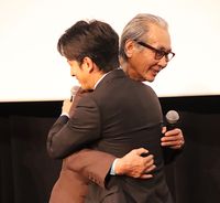 その姿に胸を熱くしたのが岡田で、自分の挨拶の番になると「すいません…ちょっと待ってください」とこみ上げるものを堪えられず、感涙。隣にいた西島が真っ白なハンカチを差し出し、背中を優しくさすると、岡田は「共にやれてよかった。大作さんが人生をかけているのを現場でも感じていた。感極まっているのを見て、もらい泣きしました」と言葉を絞りだし、「『映画ってこうなんだ』というか。1本1本、人生をかけて(映画を)撮られている背中を見せていただいた」と木村監督への感謝を語った。