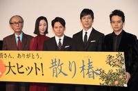 日本映画界の巨匠・木村大作が初の時代劇に臨んだ映画『散り椿』の初日舞台挨拶が9月28日にTOHOシネマズ日比谷で開催され、岡田准一、西島秀俊、黒木華、池松壮亮、木村監督が登壇。感極まる木村監督を見て、岡田が男泣き。西島からハンカチを受け取り、涙を拭った。