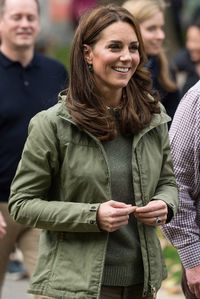 また同日は、ルイ王子を出産して以来初の公務でキャサリン妃が、スクールキッズに対面した際に着ていた、フェールラーベンのカーキ色のジャケットとザラのバイカーパンツというカジュアルな出で立ちと激似だったことも話題に。